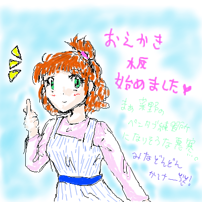 というわけで、お絵かき板設置完了w 菜野さんのペンタブ練習場になりそうですが、皆さんもどしどし描いて下さいねd(*⌒▽⌒*)b ニコニコッ