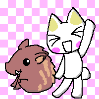 こんにちは。 パソコンが新しくなって初のお絵描きです。 MacのOS10は絵板と相性悪いと思ってたら 今回のはよいみたいで落ちなかったです。 これで安心して描けますが…使い慣れなくて 悪戦苦闘しました。 同じ猫キャラということでトロ&OH!くんの図。 OH!くんとトロはどちらが身長高いのでしょうね? 描きながらそんなことが気になりました。