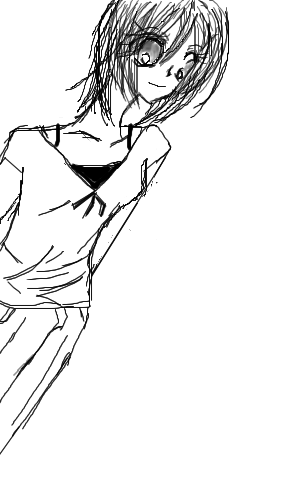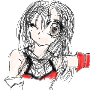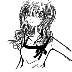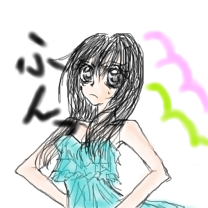 ああ!未完成なのに間違ってクリックしてもうた!!! でも、なんつーか、コレは失敗です。 まず、目が大きすぎる!!!コワイキモイ。 そして、髪が相変わらず下手!!! 顔が大きい!!! あああああ〜〜〜・・・。