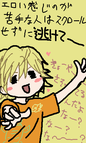 か…考えなしに描いてったら妙なことになった…orz ディーノさんの脇毛を描くべきか描かざるべきか悩み、結局描かないでおいたら、つるぺた兄貴になりました。でも判断は正解ですよね。絵の中央が脇毛はどうかと。 最近家に虫が大発生して心がくじけそうです。巣(?)が3つもあり全てを撤去して掃除して…とやってはいるものの(まあ主に親が。)まだ残っていたりして台所へ行く時は覚悟が必要…; 皆様も夏場の食品管理にはお気を付けを…(T-T) 8/1・4・12拍手ありがとうございます!モリモリ頑張らせて頂きます!!