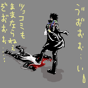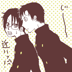 昨日、三時間ほど掛けて描いた絵を慌てて投稿しようと思いいらないレイヤーを削除していたら誤って統合した画像を削除してしまいました。…も、もう絵板で三時間以上掛けるのは止めよう…orz因みにコレは一時間半位。もっとはよ描けるようにならねば! 学校課題が非常にやばい感じなんですが、他のものに現を抜かしております。投稿用でもなく、イベ合わせ原稿でもなく…ディノヒバin陰間茶屋パラレル!!(死) いや、ちょ、呆れないで下さい!最初は相方と「(笑)」って感じにパラレルの王道について話してたんです。で、つい、萌えた。や、内容が無ければスルー出来たんですが、それも話してて出来ちゃって今のところネームが30p位になったんですけどねぇ…書き留めときたいのがあと30p位は堅い感じで; …ネームくらい余裕で一日に15p位出来るようにもなりたいなぁ。 というか、 成 れ という。 七月二日拍手有り難う御座いました!がんばります!