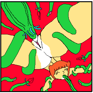御子神3姉妹の海。 御子神りこが軟体動物の触手に襲われて、 その、触手に侵された。 終。