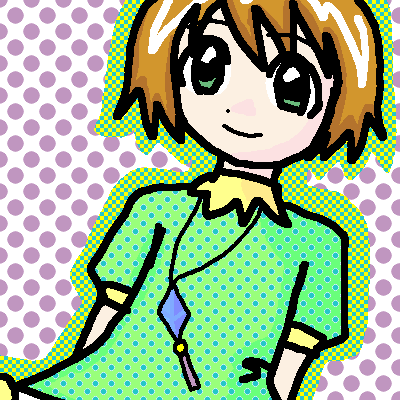 かわぃい〜(´∀`*) キャラたんの絵の真骨頂って感じですね♪ 水玉模様と色使いが涼しげで ('∇^d) グー☆!! PS 首に下がってるのは ブルーウォーター(ナディア)もしくは 飛行石(ラピュタ) かなw(●⌒▽⌒●)
