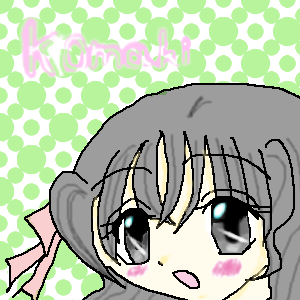 わ〜!!あいすコメントありがと〜!! 眼うまい?ありがとぉ! 顔が横長なのは、顔を下の方に描いたら こうなっちゃった; ほっぺは「女の子は赤くなきゃ!」と思ってるからこうなった・・・。 別に赤くなくても良いのにね。 「KOmaki」? うあー・・やっぱりO大文字に見えたか〜・・・。 小文字のつもりで描いたんだけどね・・・。 でも、可愛いって言ってもらえて嬉しいよw では!