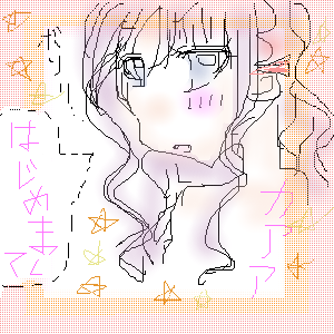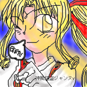 えっえっギザかわいい! 髪のけうますぎやん! 眼とか気合はいってるねぇv けど・・・顔がちょっぴし、 横長だったりなかったり・・・。 ほっぺの赤いっつもうまいよね! ウィンクにほれた。 ちー様もノックアウトだね。こりゃ でわばーいばい