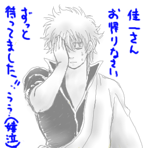 初めて投稿(書き込み)させて頂きます、侑です。 佳一様の素敵な作品に感動して、投稿させて頂きました。 特に、イラストの暑中見舞いの土方のエロさ(ぇ)には、身悶えてしまって興奮のあまり涙ぐんで…っ!! このサイトを見ている時、一人でよかったです(笑 ハァハァしてましたから…!!! 本当にこのサイトにめぐり逢えて良かったです!!! 月並みなんですが、サイト運営頑張ってください。 本当に、佳一様の銀時+土方には癒されます…!! これからも目の保養にさせていただきますねw それでは、乱文失礼致します。