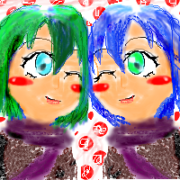 また間が空いてしまってすみません! 今度は可愛らしい双子さんと女の子ですね。 3人ともステキです! 双子さんの名前ですか・・・? う〜ん、青い髪の方は蒼(あおい)さん、緑の髪の方は葉(よう)さんなんていかがでしょうか? もしよろしければお使いくださいませ。