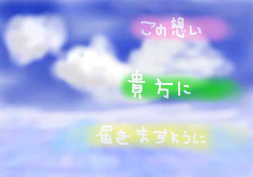 初めての風景画です。これは 一応『空』のつもりなんですが、見えますかね?いやいや、空だけじゃ寂しいので、 言葉もいれました。ちょっぴり せつない 恋をイメージしました。