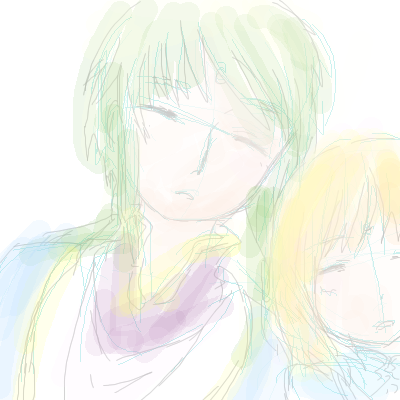 私こっち向きの顔裏から透かして直さないとうまくかけないのに書いちゃうわけですよ…… 確認してないのでうまく描けてないと思います A値を下げた鉛筆ツールで色塗るのが楽しいです