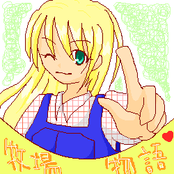 鈴村ちこさんの絵です。なんか投稿エラーだそうで…。 ちこ(^^)ノシ描きに来てくれてありがとう!!かわいいねえ(*^_^*) 女の子主人公のやつかな〜 牧場物語は私もよく知らんのですが、これいいなあと思った記憶あり(笑) 服の模様テクスチャですな(^^)